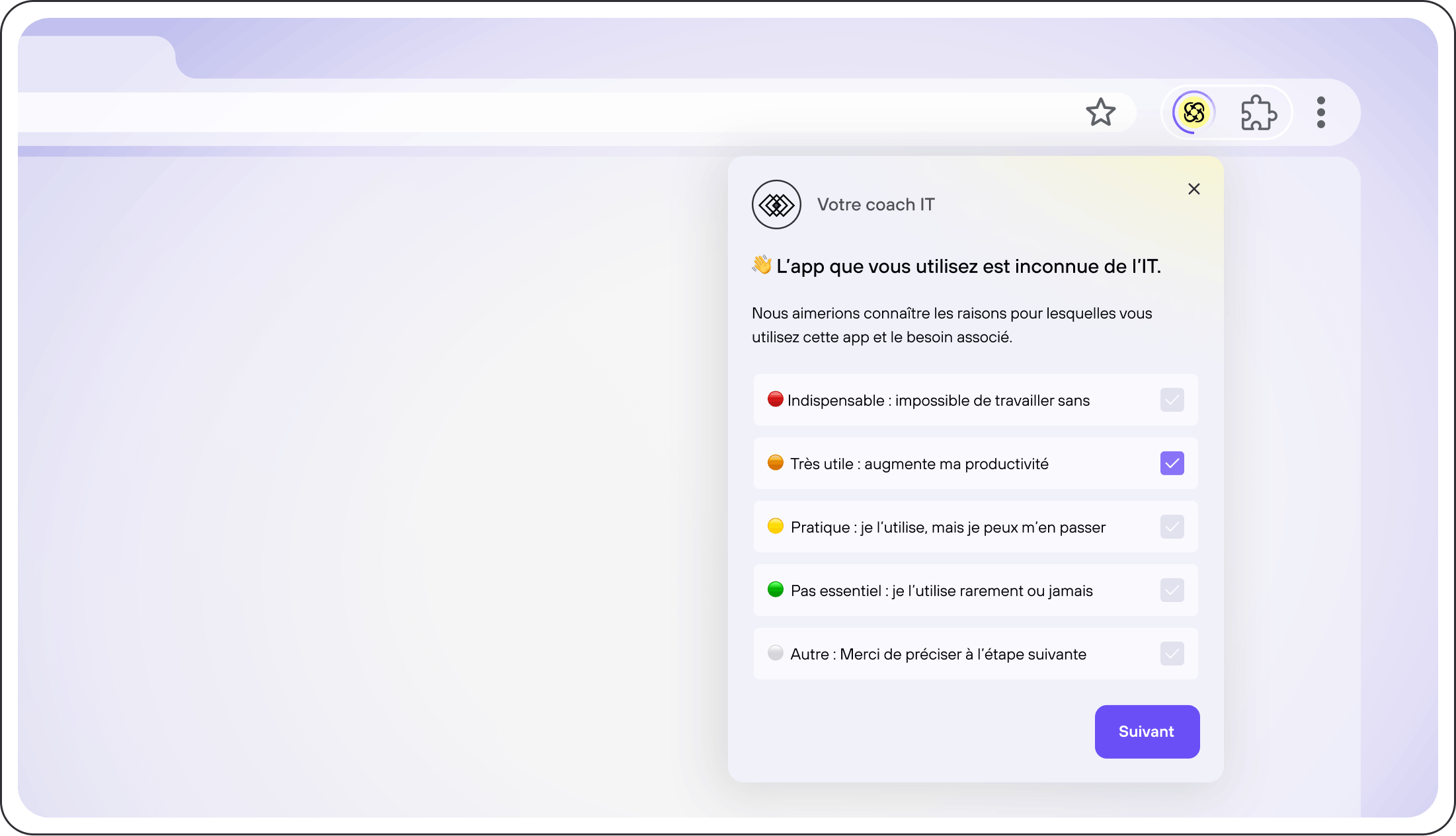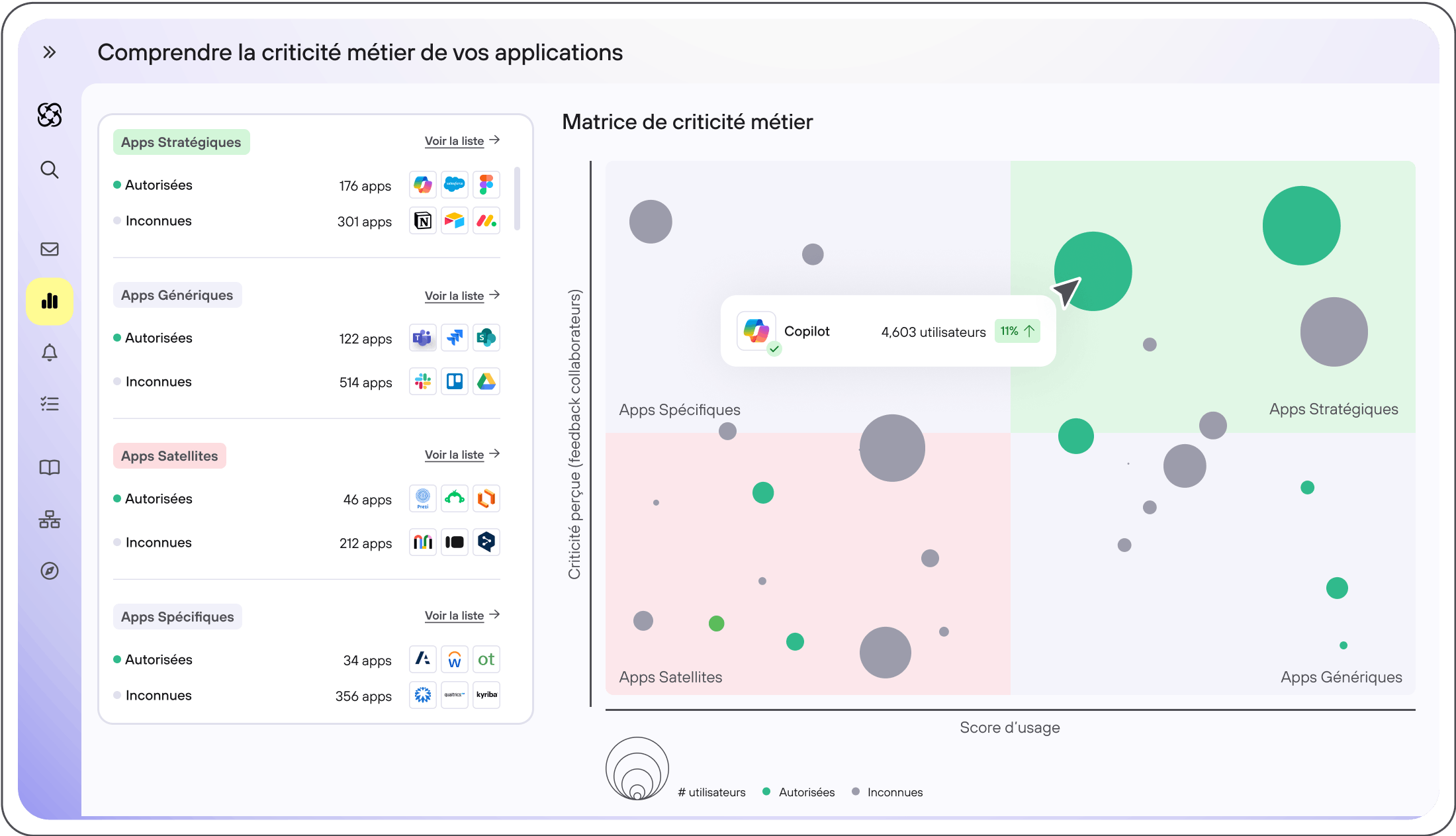- Identifiez 100 % des applications utilisées (apps internes, SaaS publics)
